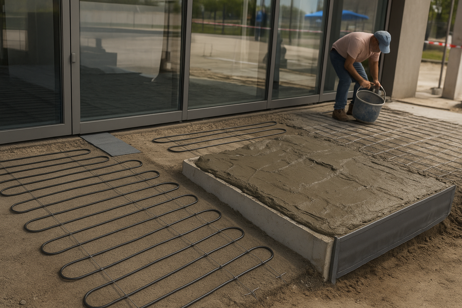 Система обогрева ступеней и крыльца предотвращает наледь и травмы. Автоматически включается при снегопаде по датчикам, сушит покрытие после. Подходит для бетона, плитки и гранита, без реагентов.